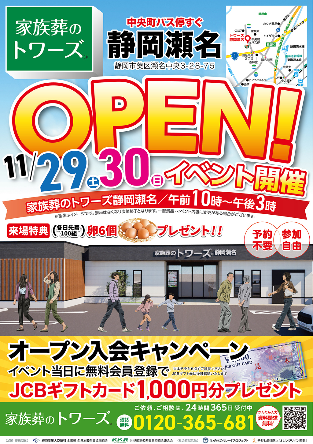 静岡市清水区の家族葬専用式場 家族葬のトワーズ 清水南矢部にて、日ごろの感謝の気持ちをこめて「感謝祭」を開催いたします!「まだ中を見たことがない」「どんな雰囲気か気になっている」そんな方も気軽にご参加いただけるイベントです。当日は人形供養祭、ガラポン抽選会、グルメ屋台、野菜やお茶のつめ放題などお得で楽しんでいただける企画をご用意しています。初めての方でも安心してお立ち寄りいただけるようスタッフ一同心を込めてお迎えいたします!どうぞお気軽に「家族葬のトワーズ 清水南矢部」へご来館ください!