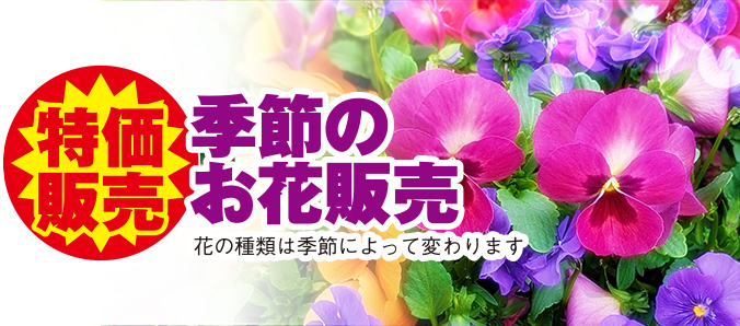 季節のお花を大特価にて販売いたします。なくなり次第終了となりますのでお早めにご来館ください。